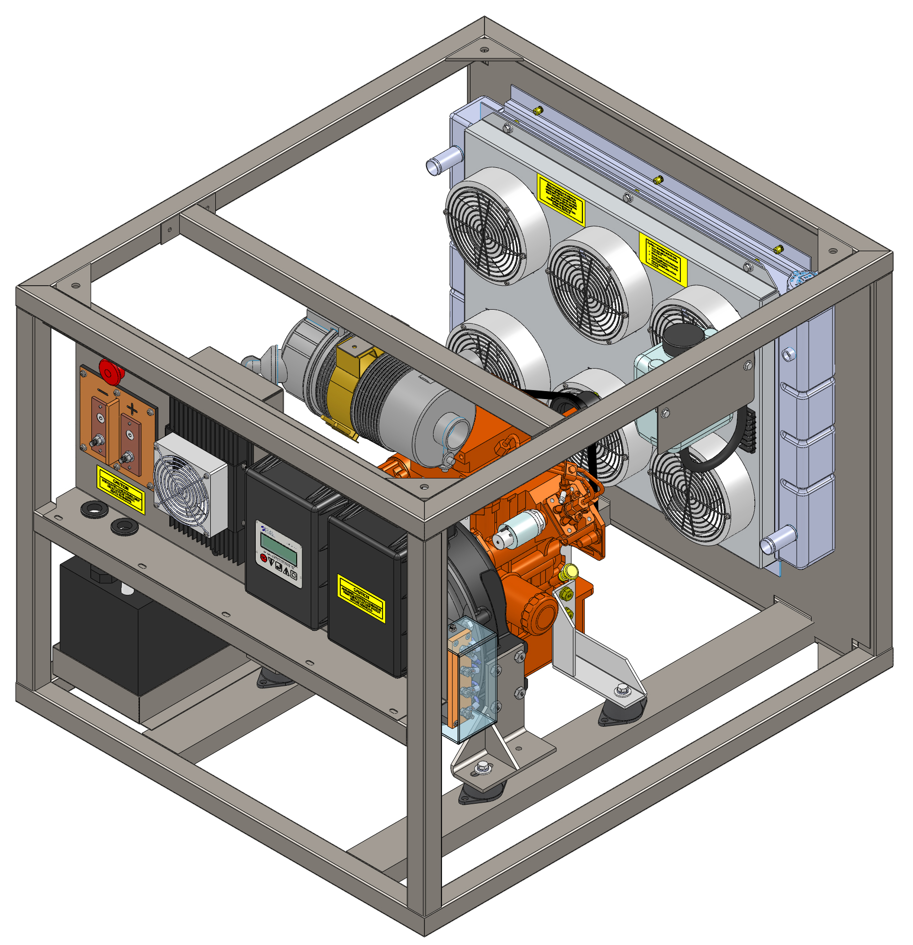 The open frame allows for stacking of the generators, one on top of another.